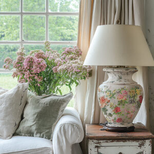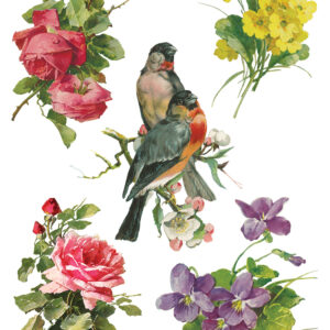This transfer features sumptuous blooms with exquisite details and soft, painterly touches reminiscent of her signature style. From sprawling roses to charming bouquets and sweet hand-painted birds perched on their branches, the Catharina Transfer is brimming with whimsy and natural beauty.