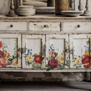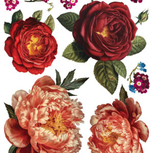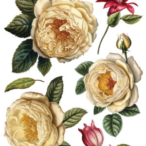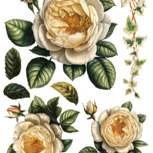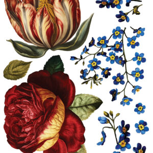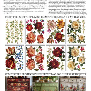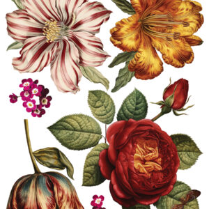 From the 2024 Spring IOD Collection we introduce you to Collage de Fleurs. Taking its cue from the French “Coller,” to glue or stick together. This transfer set celebrates blossoms with big, bold, and undeniably beautiful. Collage de Fleurs has minimal stems with grandiose blossom heads offering incredible creative freedom. Envision pairing them with elegant typography, adorning a thrifted lampshade with a rustic wood base, or creating beautiful wall decor and charming trinkets! There are eight 12” x 16” sheets bursting with florals. There is a full sheet of trailing ivy amongst these blooms. Let them meander amongst the blossoms or cluster them for a bigger impact. Collage De Fleurs is very intentional about its stylistic versatility. From furniture to smalls you are going to be giddy with how much you can create from this set! Your heart may beat for the charm of an English Cottage or the whimsy of Cottage Core. Because this Iron Orchid Designs Transfer set adapts with ease you can also use it for the bold flair of Eclectic Decor. Whatever color background you choose, you will find this set harmonizing with any colorful palette to make it your own.
