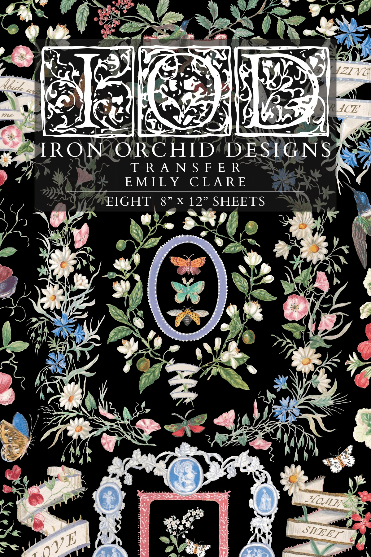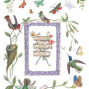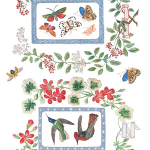 The Emily Claire – 8-Page 8×12″ Transfer Pad comes from one of our favorite archive finds to date. Taken from an 1868 family album belonging to Miss Emily Clare Harvey, the artwork began as her pencil and watercolor illustrations lovingly added around her family’s portraits. The Cooper Hewitt preserved the album, and when we discovered it, Sam (our Senior Designer) and Sally immediately fell in love with its whimsical, beautifully hand-painted details. The set includes charming elements like kittens, hummingbirds, butterflies, banners, and even a proud little rooster—each one quirky, delicate, and full of character.