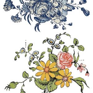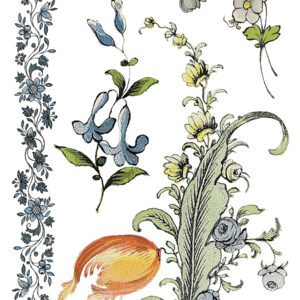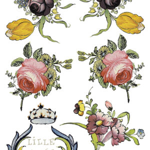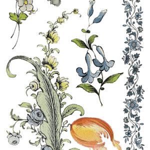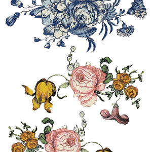 Fairy Tale Florals features floral motifs often seen in historical textiles and pottery, drawn from a historic pottery and china design book. Each sheet showcases an array of charming flowers, including roses, tulips, and other blooms in darling vintage compilations.