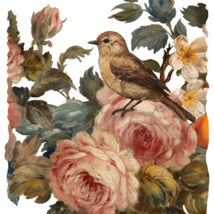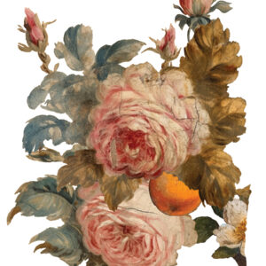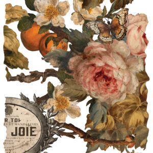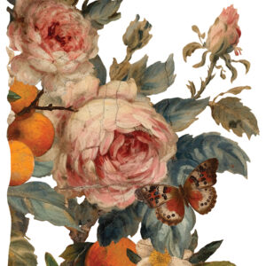 Introducing Joie Des Roses, a transfer collection that whisks you away to the elegance of the Renaissance era, blending muted colors with playful touches. This set is all about joy and sophistication, with mandarins adding a fresh, whimsical note to the classic rose motif.