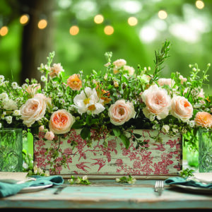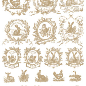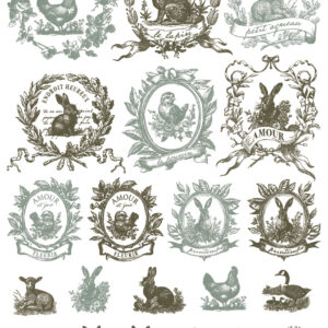 Imagine those sweet rabbits on small décor and mixed media or bold, breathtaking statements with clusters of roses on a vintage dresser.